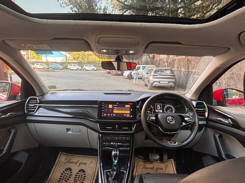 2021 SKODA KUSHAQ STYLE 1.5 TSI DSG AUTOMATIC PETROL SINGLE OWNER MUMBAI REGISTERED TOP OF THE LINE MODEL ONLY 31000 KMS DRIVEN WITH SERVICE RECORDS IMMACULATE CONDITION WELL MAINTAINED WITH LEATHER SEATS ALLOY WHEELS AIRBAGS TOUCHSCREEN MUSIC SYSTEM SUNROOF PUSHBUTTON START AND VALID COMPREHENSIVE INSURANCE UPTO AUGUST 2026
